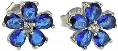NorbiSrebro Srebrne Rodowane Kolczyki Kwiatuszki z Niebieskimi Cyrkoniami IDTKWIAT140920 Kraków