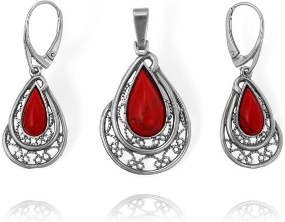 Norbisrebro Srebrny Ażurowy Oksydowany Komplet z Jaspisem (IDKOMPLET070824A) Kraków