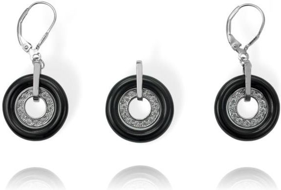 Norbisrebro Srebrny Komplet Ceramika Kółka Okręgi z Cyrkoniami (IDKOMPLET120824C) Kraków