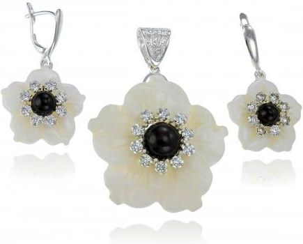 Srebrny Komplet Kwiatki z Masy Perłowej Onyks i Cyrkonie Bardzo Efektowny Wizualnie - Polecam !!!Próba 925 Waga ~Kolczyki 9,1 g. Wisiorek 10,1 g. Długość - Kolczyki 3,6 cm. Wisiorek 4,9 cm. Szerokość - Kolczyki 2,2 cm. Wisiorek 3,7 cm. KOLCZYKI DOSTĘPNE NA BIGLU,NA SZTYFT MERDAJĄCY,NA ANGLIKU KUPUJĄC U MNIE BIŻUTERIĘ OTRZYMUJĄ PAŃSTWO !!! Biżuterię Przebadaną i Podbitą przez Urząd Probierczy ! Dowód zakupu (paragon/faktura Vat ) ! Ubezpieczenie przesyłki ! Metkę jubilerską ! Gwarancję 12 miesięcy ! Odpowiednio Dopasowane do Wyrobu Pudełeczko Jubilerskie Możliwość zwrotu lub wymiany w ciągu 14 dni Towar ten jest nowy nigdy nie używany Zapraszam serdecznie !!!