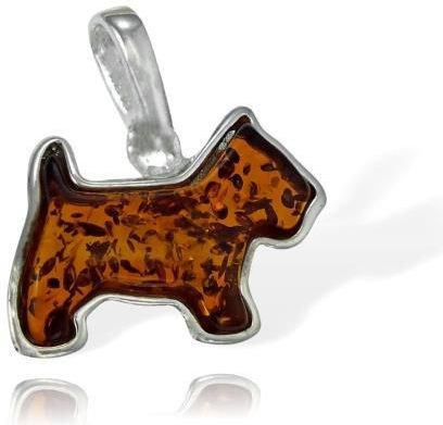 Norbisrebro Srebrny Oksydowany Wisiorek Pies Piesek z Bursztynem Kraków