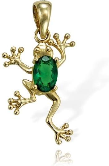 Norbisrebro Złoty Wisiorek Efektowna Żaba Żabka z Zieloną Cyrkonią Kraków