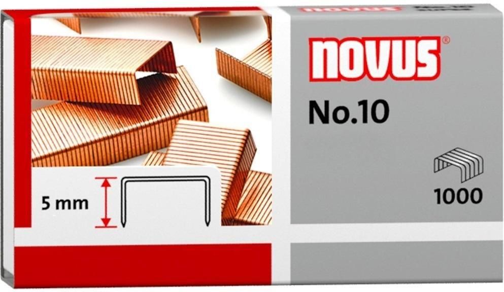Zszywki Novus, miedziowane w sposób przyjazny dla środowiska oraz precyzyjnie wykonane, spełniają wymogi DIN 7405. Zszywki stalowe do zszywaczy biurowych. Wysokość nóżki: 5 mm. Umożliwiają zszycie do 20 arkuszy standardowego papieru (80g/m2). Opakowanie zawiera 1000 szt. Opakowanie: pudełko