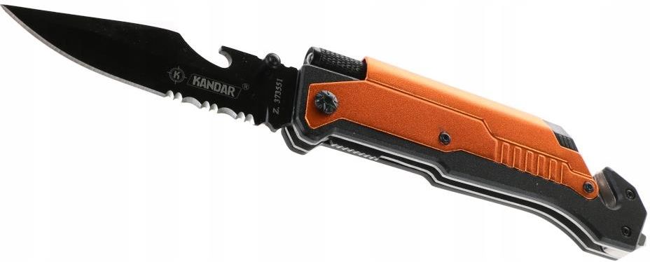 Nóż ratowniczy 3 w 1 Wielofunkcyjny nóż nadaje się na wycieczki, survival, ale również do użytku codziennego Cechy produktu: Nóż wykonany z wysokiej jakości stali Górna część ostrza wyposażona w otwieracz do butelek Bardzo ostry Wygodnie leży w dłoni Dolna krawędź ząbkowana Scyzoryk składany Klips …