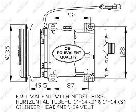 Kod towaru: 32876/NRF Ograniczenia producenta: SANDEN-EQUIVALENT Artykuł uzupełniający / informacja uzupełniająca 2: z olejem do sprężarki PAG Koła pasowe: z kołem pasowym ID sprężarki: SD7H15 Napięcie [V]: 24 Olej do sprężarki: PAG 46 Liczba rowków: 1 Ø koła pasowego [mm]: 135 Ilość oleju [ml]: …
