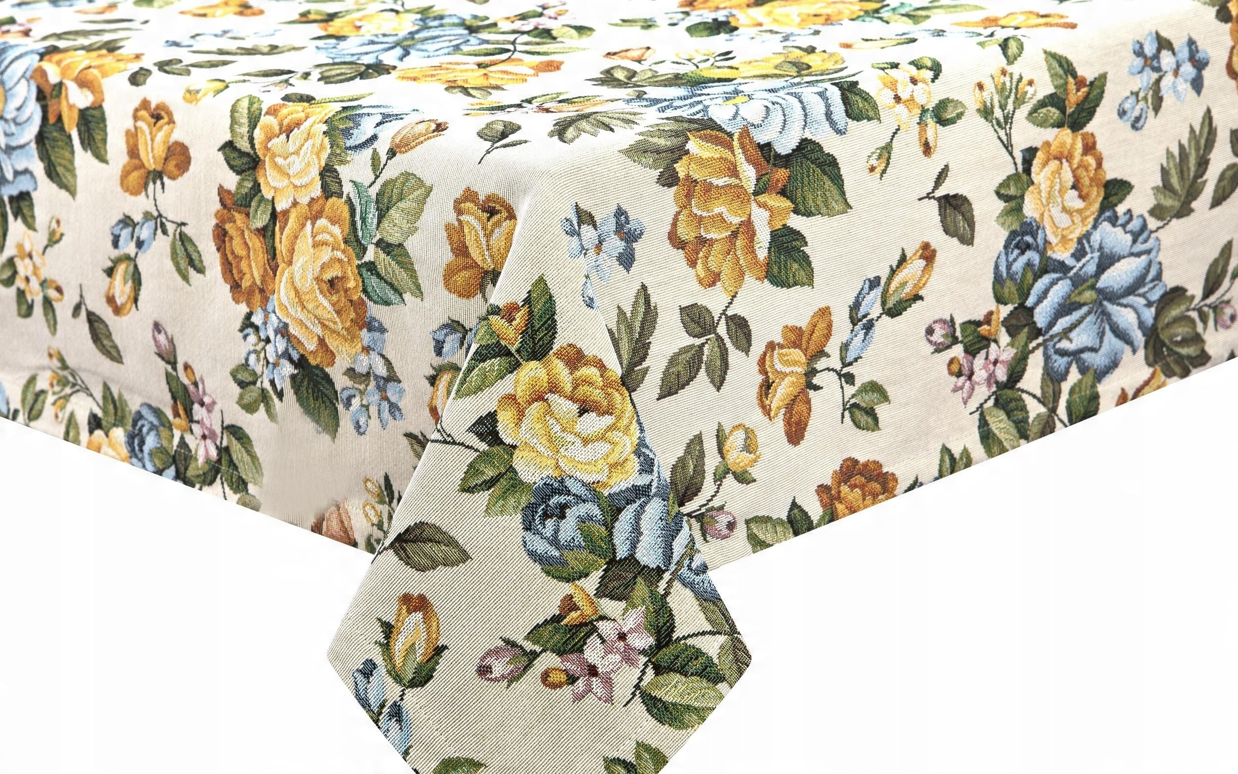 Obrus gobelinowy 135x210 cm Lima 055 Zjawiskowy obrus gobelinowy , który wniesie do każdego wnętrza mnóstwo ciepła i przytulności. To unikalne zestawienie z pewnością wprowadzi nas w błogi, nastrój i wzbogaci radość ze wspólnego biesiadowania. Wzór utrzymany jest w ciepłej tonacji tła, która subtelnie kontrastuje z żółtymi kwiatami. Styl graficzny nawiązuje do klasycznych ilustracji gobelinowych – tekstura widoczna na materiale podkreśla rzemieślniczy, niemal vintage’owy charakter wzoru. Ten dekor przywodzi na myśl sielskie lata spędzone na wsi – zachęca do celebracji codzienności, do delektowania się chwilą i do spotkań przy stole. Idealny do wykorzystania w kuchni, jadalni lub na tarasie, gdzie stworzy atmosferę staropolskiej gościnności i cudownego uroku. Zdjęcie aranżacyjne służy celom poglądowym. Szerokość (cm): 135 Długość/głębokość (cm): 210 Kolor: wielokolorowy Kształt: Prostokątny Skład: poliester, bawełna, akryl Wzór/motyw: Kwiaty Plamoodporny/pokryty teflonem: Nie Rodzaj tkaniny: Gobelinowa nr katalogowy (336239) Skład 75% poliester 22% bawełna 3% akryl KILKA WSKAZÓWEK, BY OBRUS DŁUGO NAM SŁUŻYŁ: Pranie w temperaturze 30°C Prasowanie 110°C Nie należy chlorować, ani suszyć w suszarce. Tkanina gobelinowa zapewnia efektowny dekoracyjny wygląd, a wzór uzyskany techniką tkania sprawia, że obrus doskonale komponuje się zarówno w klasycznych, jak i nowoczesnych aranżacjach. Obrus jest tkany, ma strukturę gobelinową - nie drukowaną. Łatwo utrzymać go w czystości. Warto pamiętać, że odcienie mogą się nieznacznie różnić w zależności od oświetlenia i ustawień monitora, co tylko podkreśla unikalność każdego egzemplarza.