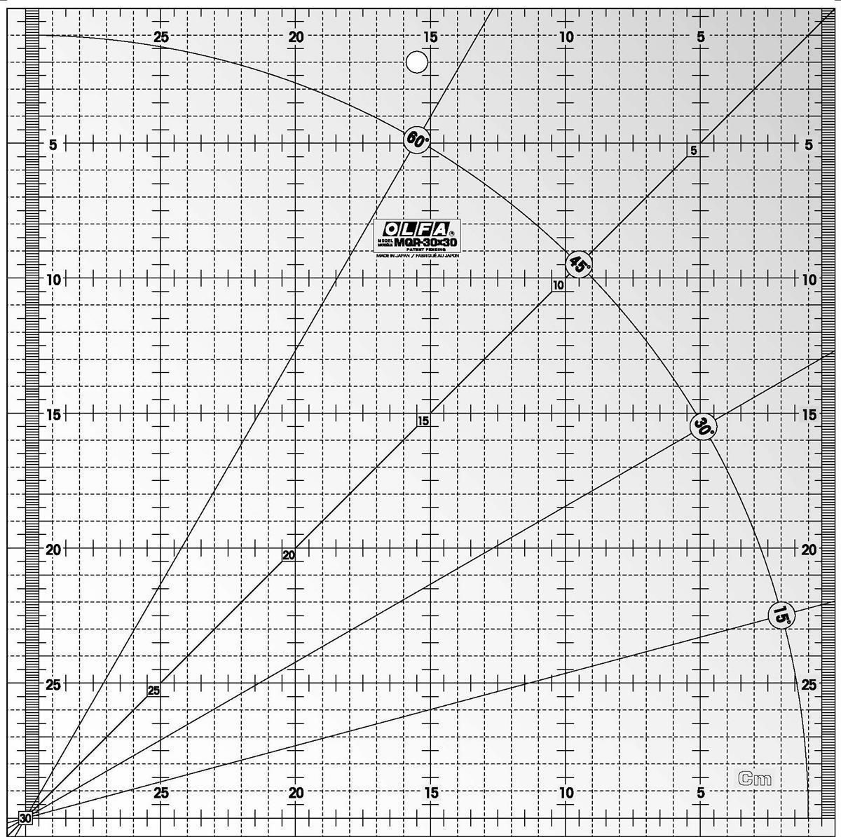 Szablon do cięcia OLFA MQR-30X30 - wygoda i dokładność Akrylowy, przezroczysty szablon o wymiarach 30x30 cm i grubości 3 mm, z podziałką centymetrową, przeznaczony specjalnie do cięcia tkanin nożami krążkowymi, ale również bardzo użyteczny przy cięciu nożami segmentowymi i artystycznymi. …
