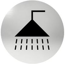 Oznaczenie na drzwi, piktogram PRYSZNIC. Produkt wykonany z wysokiej jakości metalu - stali nierdzewnej w gatunku 304 wg. amerykańskiej normy AISI. Oznaczenie o standardowej średnicy 76 mm. Sposób montażu: za pomocą wysokiej jakości, markowej taśmy dwustronnej na rewersie oznaczenia (taśma w zestawie).
