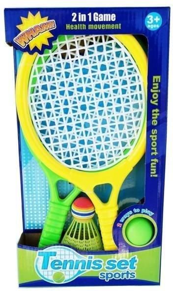 Zachęć swoje dziecko do aktywnej zabawy na świeżym powietrzu! Kolorowy zestaw tenisowy to idealna propozycja dla maluchów, które chcą poczuć się jak prawdziwi sportowcy. W zestawie znajdują się 2 lekkie rakietki, piłeczka oraz lotka, co umożliwia grę zarówno w stylu tenisa, jak i badmintona. Zestaw zawiera: 2 kolorowe rakietki (bezpieczne i lekkie - idealne dla małych rączek) 1 piłka tenisowa z tworzywa 1 lotka do badmintona Oryginalne opakowanie - idealne na prezent! Dla dzieci od 3. roku życia Rozwija koordynację ruchową Wspiera aktywność fizyczną Zabawa na świeżym powietrzu i w domu Możliwość gry w 2 osoby Doskonały pomysł na prezent urodzinowy, wakacyjny lub na Dzień Dziecka!