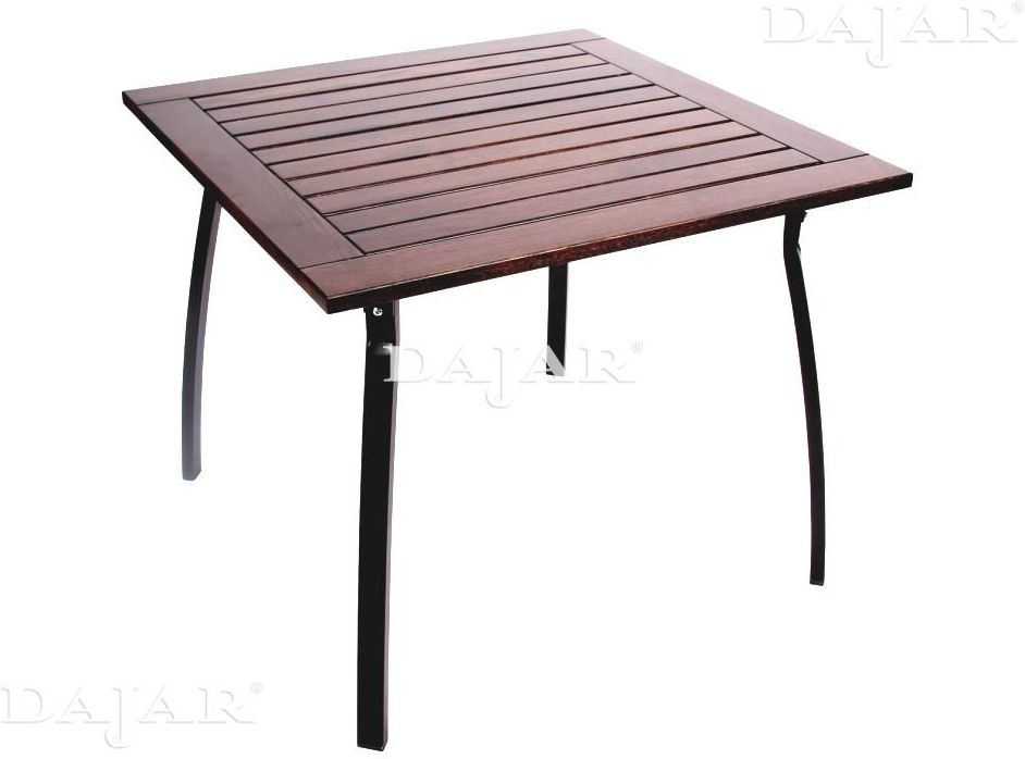 Stół z blatem drewnianym na wytrzymałym i sztywnym stelażu stalowym - malowanym farbą proszkową. Blat wykonany z drewna jesionu charakteryzującego się wysokim współczynnikiem twardości i odporności na uszkodzenia. Elementy drewniane impregnowane przy użyciu bejcy chroniącej przed sinicą i szkodnikami atakującymi drewno oraz dwukrotnie lakierowane wysokiej jakości lakierem Remmers odpornym na działanie UV. Stelaż malowany 2–krotnie w celu lepszego zabezpieczenia antykorozyjnego. Stelaż - antracyt, blat - brąz (jesion).