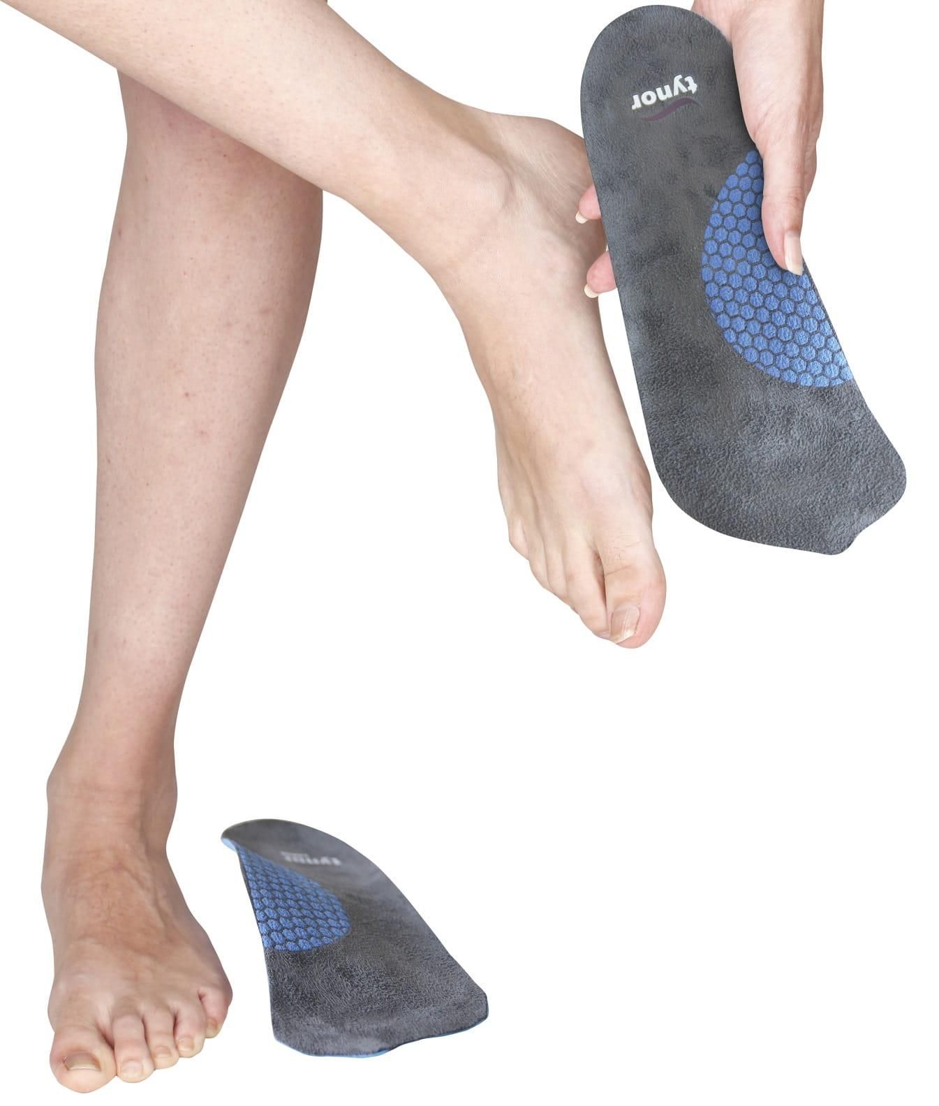 Pediatryczne Wkładki Ortopedyczne Na Płaskostopie WKŁADKI ORTOPEDYCZNE NA PŁASKOSTOPIE DZIECIĘCE, PEDIATRYCZNE 2 sztuki Wbrew pozorom stopy odgrywają bardzo ważną rolę w naszym organizmie. Są także głównym elementem układu ruchu. Wszelkie nieprawidłowości w ich funkcjonowaniu mają rozległe skutki dla całego naszego ciała. Od zdrowia stóp zależy m.in. ustawienie naszych kolan i bioder. Problemy ze stopami wpływają również na kręgosłup. Jak widać, warto zadbać o ich zdrowie, ponieważ ich wady mogą spowodować wiele innych dolegliwości. Kiedy stosować wkładki ortopedyczne na płaskostopie? Zadaniem wkładek ortopedycznych jest zapewnienie właściwej pozycji stopy, co ma ogromne znaczenie dla prawidłowego funkcjonowania całego układu ruchu. Najczęściej zalecane są osobom cierpiącym na płaskostopie podłużne i poprzeczne. Wspierają także sklepienie stopy. Odpowiednio dobrane pozwalają zniwelować ból w obrębie stóp, kolan i bioder. Odciążają również kręgosłup. Nieprawidłowości w obrębie stóp wpływają bowiem także na jego postawę. Stosowanie wkładek sprawia, że stopa układa się w naturalny sposób, a nacisk na nią jest równomiernie rozłożony. Mogą być stosowane także przez osoby, u których występuje wzmożony wysiłek stóp spowodowany pracą stojącą lub chodzącą. Właściwości produktu Niwelowanie dolegliwości bólowych Płaskostopie podłużne i poprzeczne sprawiają, że obciążenie stopy rozłąka się w nieprawidłowy sposób. Skutkuje to bólami nie tylko w obrębie stopy, ale także bioder, kolan i kręgosłupa. Przywrócenie prawidłowego ułożenia stóp podczas chodzenia pomaga zatem zniwelować dolegliwości bólowe w innych częściach układu ruchu. Komfort użytkowania Wkładki zostały anatomicznie wyprofilowane, dzięki czemu ich noszenie jest bardzo komfortowe. Ich część przylegającą do stopy pokryto przyjemną w dotyku tkaniną. Jej porowata powierzchnia zapobiega przesuwaniu się stopy w obuwiu. Dodatkowo środkową część wkładki pokryto specjalną strukturą, która przyjemnie masuje stopę podczas chodzenia. Produkt ten umożliwia swobodny przepływ powietrza. Nie powoduje zatem nadmiernego pocenia stóp. Zaletą wkładek jest to, że mogą być stosowane w różnych typach obuwia. Można swobodnie je przekładać w razie potrzeby. Są bardzo lekkie, dlatego ich użytkowanie jest w pełni komfortowe. Czyszczenie Dla pacjentów długotrwale korzystających z wkładek ortopedycznych bardzo ważne jest to, aby były łatwe do utrzymania w czystości. W razie potrzeby można przetrzeć je wilgotną ściereczką. Przed ponownym użyciem powinny zostać dokładnie wysuszone. Po wyczyszczeniu należy je pozostawić rozłożone na płasko do swobodnego wyschnięcia. ROZMIARY: Rozmiar obuwia XXXS 25 - 27 (Ch3) XXS 28 - 30 (Ch2) XS 31 - 33 (Ch1) Bezpieczeństwo użytkowania Właściwie dobrane wkładki ortopedyczne są w pełni bezpieczne dla zdrowia pacjenta. Przed ich zastosowaniem należy zasięgnąć jednak porady lekarza specjalisty, aby mieć pewność, że to odpowiedni model dla danej wady. Wkładki marki Tynor K-10 zostały zarejestrowane w Urzędzie Rejestracji Produktów Leczniczych, Wyrobów Medycznych i Produktów Biobójczych. Posiadają także certyfikat CE dla wyrobów medycznych klasy I. Potwierdzeniem ich jakości i bezpieczeństwa dla użytkownika jest norma ISO 9001 i ISO 13485. Są zgodne także z wytycznymi Światowej Organizacji Zdrowia określonymi dla tego rodzaju produktów.