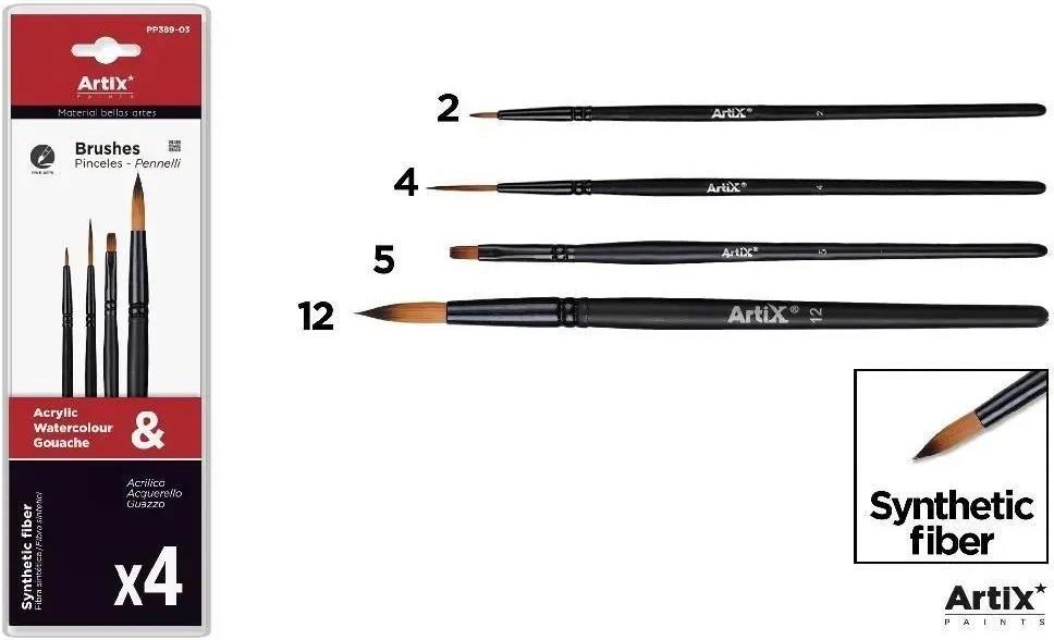 Zestaw Profesjonalnych Pędzli Malarskich Przedstawiamy zestaw profesjonalnych pędzli malarskich, idealny dla artystów ceniących sobie precyzję i jakość wykonania. Pędzle te wykonane są z bardzo miękkiego włosia syntetycznego, co czyni je idealnymi do pracy z różnymi rodzajami farb, takimi jak temperowe, olejne czy akrylowe. Jakość i Wygoda Każdy z pędzli posiada drewniany korpus lakierowany na czarno, co nadaje im elegancki wygląd i zapewnia komfort użytkowania. Długość pędzli wynosi 20 cm, dzięki czemu są one wygodne do trzymania i pozwalają na swobodę w tworzeniu. Różnorodność i Wszechstronność Zestaw składa się z czterech różnorodnych pędzli, które pozwalają na tworzenie zarówno precyzyjnych detali, jak i większych, szerokich pociągnięć. W zestawie znajdziesz: 2 pędzle z okrągłą skuwką w rozmiarze nr 2 i nr 12, 1 pędzel z bardzo długą końcówką w rozmiarze nr 4, 1 pędzel z płaską skuwką w rozmiarze nr 12 i nr 8, 1 wachlarzowy pędzel z skuwką nr 7. Ten zróżnicowany zestaw narzędzi ułatwia tworzenie różnorodnych efektów na płótnie, dzięki czemu idealnie sprawdzi się zarówno dla amatorów, jak i profesjonalistów. EAN: 8435464133339