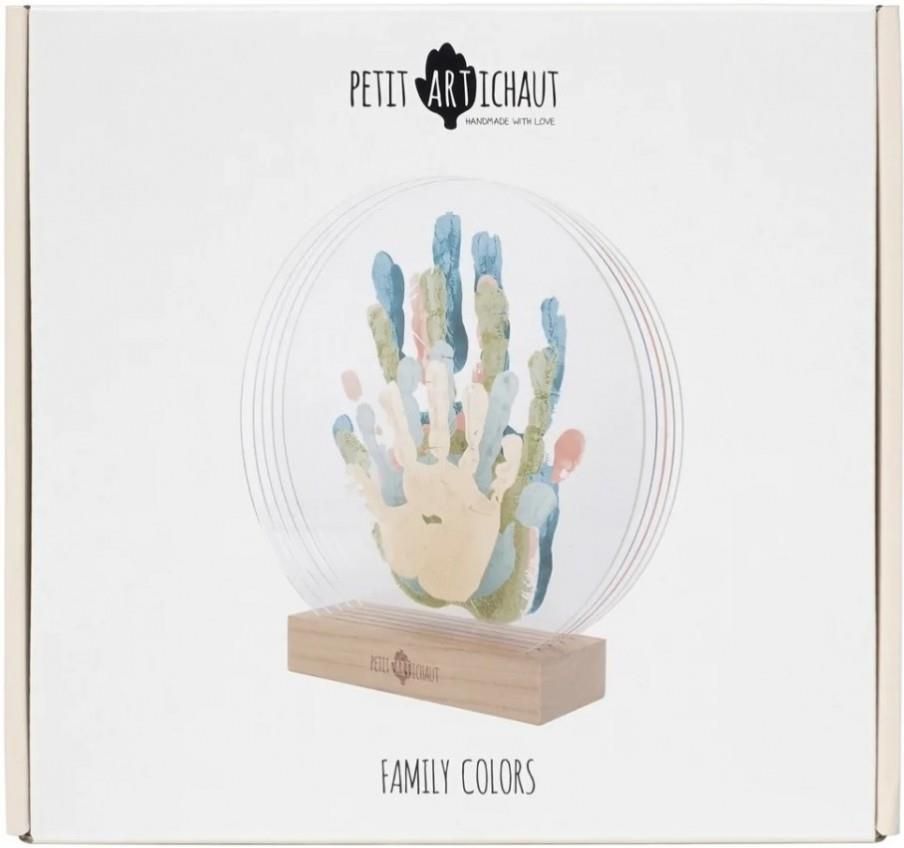 Ramka na odciski dłoni - Petit Artichaut kolor: wielobarwny materiał: drewno, akryl wymiary: dł. 20,5 x szer. 5 x wys. 21,5 cm Ramka na odciski dłoni to wyjątkowy sposób na uwiecznienie odcisków pięciu członków rodziny, tworząc niepowtarzalne dzieło sztuki. Każdy członek rodziny może pozostawić swój odcisk na osobnym, przezroczystym panelu akrylowym, a następnie połączyć je w kolorową, przestrzenną kompozycję. W zestawie znajduje się 5 przezroczystych paneli, elegancka drewniana podstawa, 5 tubek z farbami, wałek do aplikacji oraz instrukcja, dzięki której łatwo stworzysz odciski. Ramka na odciski dłoni to nowoczesny sposób na wyrażenie więzi rodzinnych i miłości, jednocześnie tworząc piękną dekorację do wnętrz. Cechy produktu Idealny prezent na narodziny dziecka Szybki i łatwy sposób na stworzenie odcisków Bezpieczny dla skóry maluszka Piękna dekoracja, która symbolizuje jedność rodziny Płyty akrylowe: czyścić miękką, suchą ściereczką.Tubki z farbą: aby na długo zachowała swoje właściwości należy trzymać w temperaturze pokojowej, w suchym miejscu i z dala od światła. Ramka na odciski dłoni to niezapomniana pamiątka, która w artystyczny sposób oddaje więź i miłość w rodzinie, tworząc unikalną dekorację, która będzie cieszyć oko przez lata.