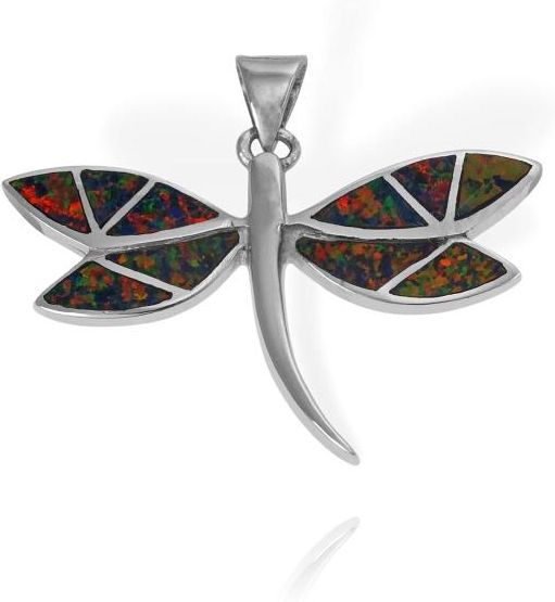Piękny Srebrny Wisiorek Ważka z Czarnym Opalem Kraków