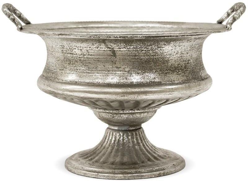 Wazon. Rozmiar: 23,5x34,5x30,5. Kolor: srebrny. Materiał: metal. Waga: 1kg. Dekoracje z Kolekcji Metale Antyk mają duszę, a każdy przedmiot wygląda na rzecz, która jest z nami od wielu pokoleń. Są trochę podniszczone, wyglądające na wysłużone, co jest zam