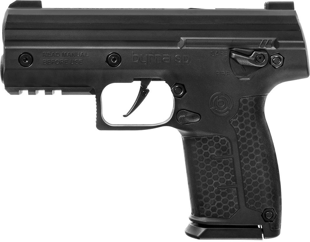 Półautomatyczny pistolet Byrna SD (Self Defense) zasilany kapsułą 8g CO2 i strzelający kulami o kalibrze .68. Poszczególne elementy konstrukcji wykonane zostały z metalu, a korpus z wytrzymałego polimeru. Do strzelania mogą być stosowane kule gumowe, gumowo-metalowe, proszkowe, pieprzowe lub z farbą.