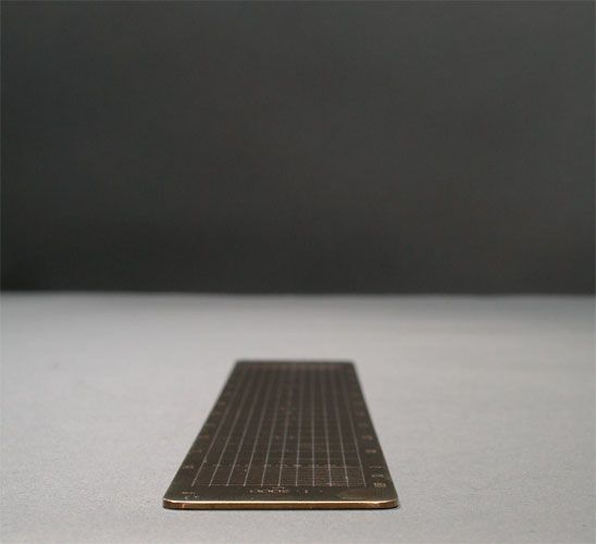 Odlana ze stopu mosiądzu, bardzo wytrzymała podziałka transwersalna do odczytu i nanoszenia długości na mapę w danej skali. Podziałka katastralna: 1:1440, 1:2500, 1:2880, 1:5000 Podziałka transwersalna: 1:1000, 1:2000, 1:4000, 1:5000