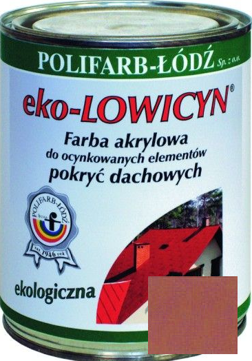 EKO-LOWICYN CEGLASTY 10L - RAL8004 EKO-LOWICYN CEGLASTY 10L - RAL8004 jest to akrylowa farba przeznaczona do ochronno-dekoracyjnego malowania powierzchni ocynkowanych na zewnątrz i wewnątrz pomieszczeń. Doskonała do renowacji pokryć dachowych, rynien, parapetów, ogrodzeń wykonanych z blachy i stali …