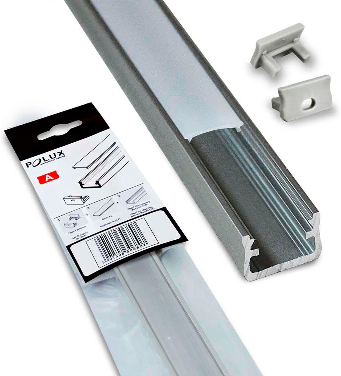 Profil do modułów LED firmy Polux jest to listwa wykonana z aluminium, do montażu liniowych modułów LED.Profil doskonale sprawdza się w przypadku montażu na płaszczyznach ścian, sufitów, a także do wpuszczania w głąb płyt drewnianych, MDF czy kartonowo-gipsowych. Dzięki przesłonie z tworzywa sztucznego, zamontowane oświetlenie prezentuje się wyjątkowo estetycznie. Niewielka wysokość profilu sprawia, że idealnie nadaje się do wpuszczania w szafki i regały. Wymiary profilu wynoszą szer. x wys. x dł: 16 mm x 9,3 mm x 1000 mm. W skład zestawu wchodzi: profil aluminiowy 1m, klosz z poliwęglanu 1m, zaślepki 2 szt.