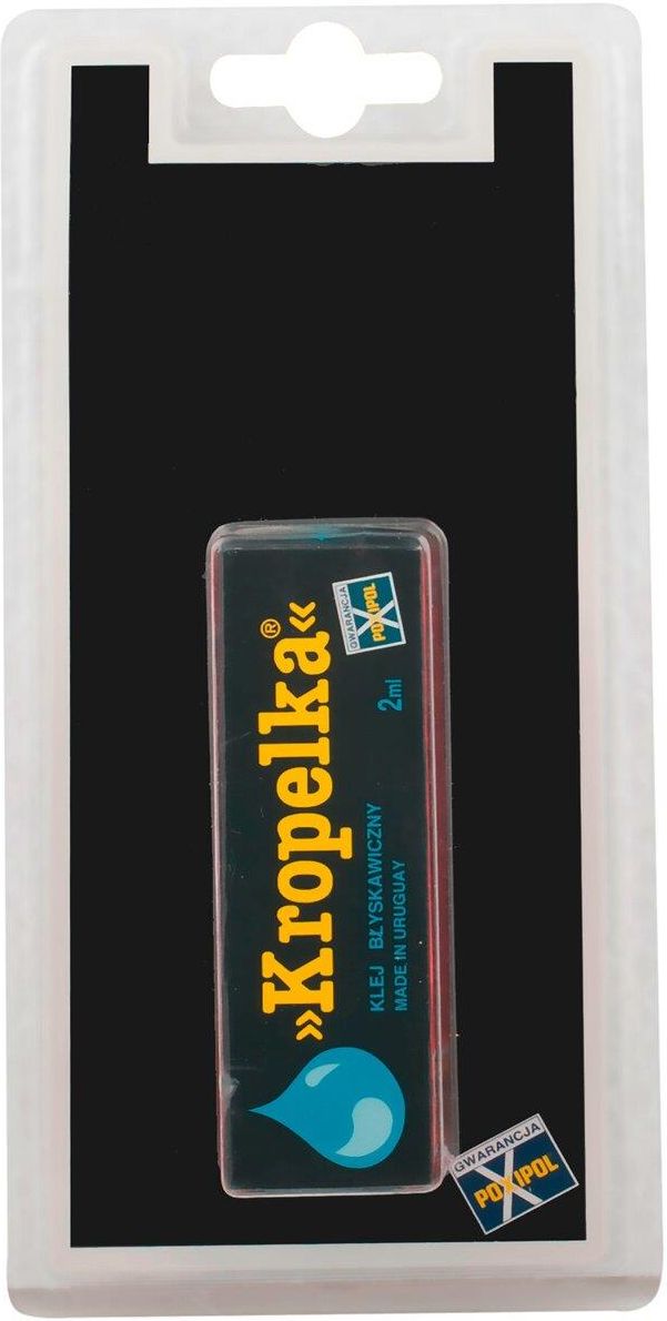 Klej błyskawiczny KROPELKA Pojemność: 2ml Klej błyskawiczny KROPELKA KROPELKA® jest klejem błyskawicznym, łatwym w użyciu, służącym do drobnych napraw w domu. Skleja w kilka sekund praktycznie każdego rodzaju materiały. Używa się go do napraw w domu, do prac hobbystycznych, i rękodzielniczych, oraz ogólnie przy różnego rodzaju czynnościach praktycznych. KROPELKA® posiada unikatowe opakowanie o następujących właściwościach: Łatwe dozowanie Kropelka po Kropelce. Tubka sama stoi w pozycji pionowej. Nie pryska. Nie wycieka. Klej błyskawiczny KROPELKA KROPELKA® jest klejem błyskawicznym, łatwym w użyciu, służącym do drobnych napraw w domu. Skleja w kilka sekund praktycznie każdego rodzaju materiały. Używa się go do napraw w domu, do prac hobbystycznych, i rękodzielniczych, oraz ogólnie przy różnego rodzaju czynnościach praktycznych. KROPELKA® posiada unikatowe opakowanie o następujących właściwościach: ✔ Łatwe dozowanie Kropelka po Kropelce. ✔ Tubka sama stoi w pozycji pionowej. ✔ Nie pryska. ✔ Nie wycieka. KROPELKA® skleja wszelkiego rodzaju materiały: ✔ Ceramika. ✔ Plastik. ✔ Drewno. ✔ Metal. ✔ Guma. ✔ Porcelana. SPOSÓB UŻYCIA KROK 1 Otwierając po raz pierwszy tubkę, weź zestaw dozownik-nakrętka i wkręcaj go na tubkę aż do momentu przebicia znajdującej się na niej membrany. KROK 2 Sklejane powierzchnie powinny dokładnie do siebie przylegać. KROK 3 Zdejmij nakrętkę z dozownika. W celu dozowania kleju naciśnij wskazane miejsca i nałóż pojedynczą kroplę na jedną z klejonych powierzchni. Nadmierna ilość kleju znacznie opóźnia jego utwardzanie. KROK 4 Ściśnij sklejane powierzchnie i utrzymuj nacisk w ciągu 60 sekund. Po tym czasie połączenie będzie już trwałe. Zakręć opakowanie i schowaj je.