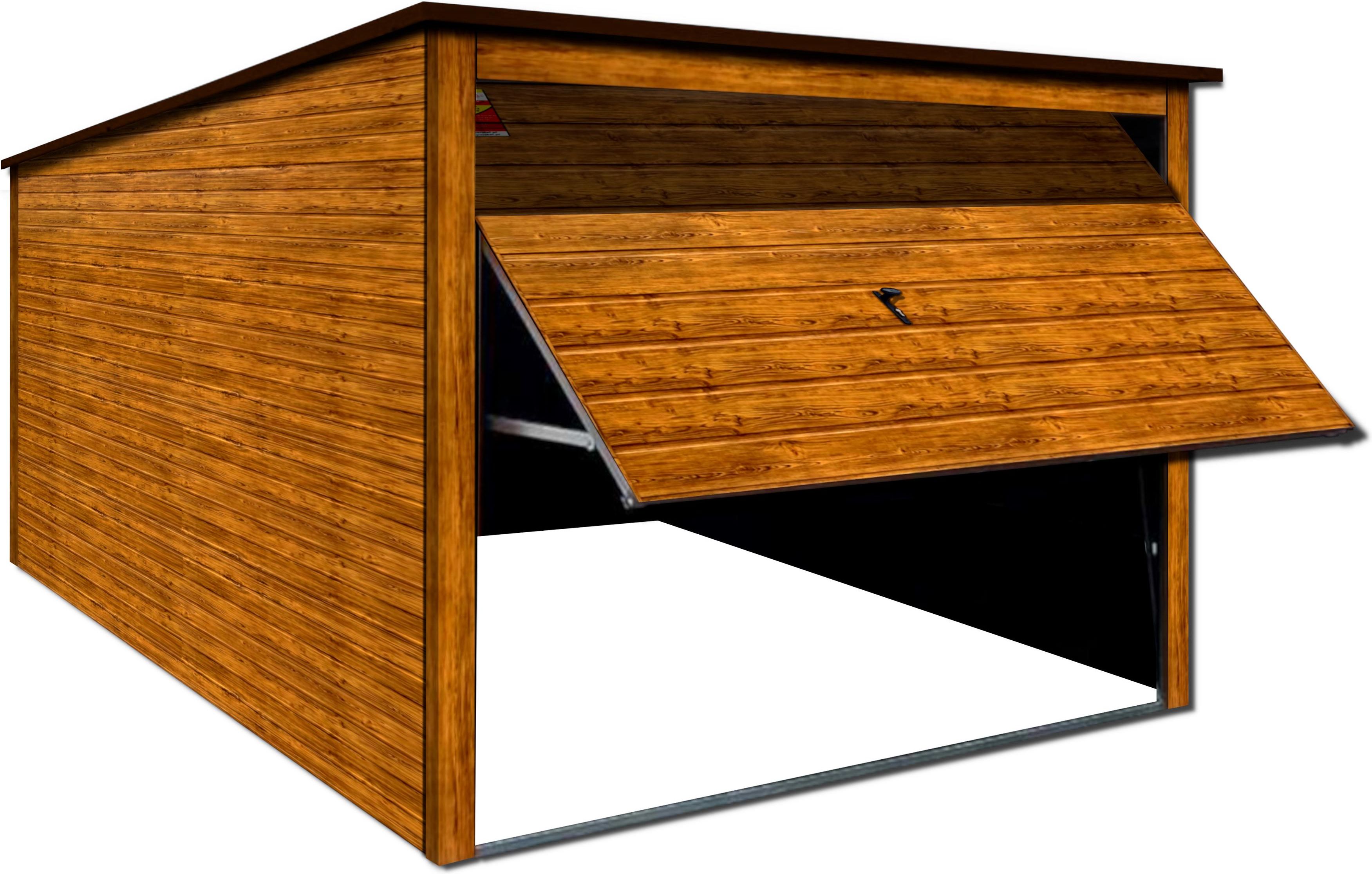 Garaż blaszany 4X6 PREMIUM – Spad dachu do tyłu, brama uchylna, okucia blacharskie, profil zamknięty Garaże blaszane z serii PREMIUM łączą w sobie najwyższą jakość materiałów wraz z niecodziennym designem! Wzmocniona konstrukcja oparta na profilu zamkniętym oraz dbałość o każdy, nawet najmniejszy detal gwarantują bezawaryjne użytkowanie przez długie lata! Jako zaufany producent garaży blaszanych gwarantujemy możliwość zmiany konfiguracji wybranego produktu - dopasowanie wymiarów konstrukcji do własnych potrzeb, dobór indywidualnej wersji kolorystycznej i wiele, wiele więcej! Parametry garażu: szerokość 4m długość 6m spad dachu do tyłu wysokość w szczycie 2,18m wysokość w tyle 1,9m brama uchylna w panelu poziomym szerokim – kolor drewnopodobny SOSNA szerokość bramy 3m wysokość bramy 2m na ścianach blacha trapezowa w panelu poziomym wąskim – kolor drewnopodobny SOSNA okucia blacharskie narożników – kolor drewnopodobny SOSNA dach pokryty blachą w kolorze BRĄZ MAT okucia dachu w kolorze BRĄZ MAT nity pod kolor blachy konstrukcja oparta na profilu zamkniętym Brama - panel poziomy szeroki, ręcznie uchylana do góry. Po obu stronach bramy w dolnych rogach zamontowano sprężyny wspomagające podnoszenie bramy Ściany - skręcane śrubami na rogach garażu. Spawane profile w formie krzyża zapewniają stabilność i wytrzymałość konstrukcji garażu. Konstrukcja - wykonana jest przede wszystkim z profili zamkniętych, z dodatkiem kątowników i ceowników. Całość jest bardzo wytrzymała i solidna. Wyposażenie dodatkowe (nieodpłatne lub odpłatne): dach ze spadem na: przód, lewo, prawo, dwuspadowy, brama dwuskrzydłowa, dodatkowe małe drzwi, otwory okienne na wymiar, możliwość zamontowania okien PCV, możliwość zmiany wymiarów garażu: szerokość, długość, wysokość, kotwiczenie do podłoża, orynnowanie, możliwość zmiany kolorystyki, blachodachówka, dobudowana wiata, filc. * WAŻNE INFORMACJE PRZED ZAKUPEM * Kolorystyka garażu – przy składaniu zamówienia prosimy o zawarcie informacji odnośnie wybranej kolorystyki garażu. Pełną paletę dostępnych kolorów można znaleźć w zakładce KOLORY. Zaprezentowane kolory mają charakter podglądowy – w rzeczywistości mogą się one nieznacznie różnić, co uwarunkowane jest indywidualnymi ustawieniami ekranu urządzenia mobilnego/komputera. Montaż - nasza firma oferuje darmowy montaż na wcześniej przygotowanym podłożu. Szczegółowe informacje i wskazówki odnośnie prawidłowego przygotowania podłoża znajdziesz w zakładce PORADNIK.