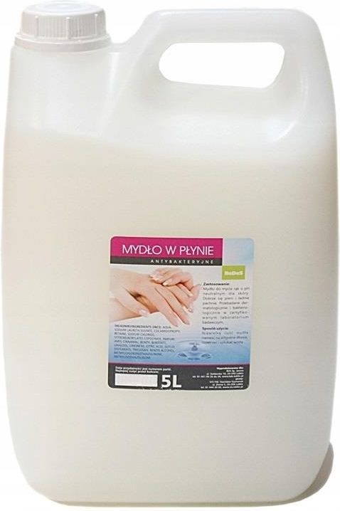PRESEPTOL SOAP Płyn do mycia i dezynfekcji rąk 5 litrów Płyn o działaniu bakteriobójczym, grzybobójczym i wiruso- bójczym przeznaczony do mycia i dezynfekcji rak. Zalecany do stosowania tam, gdzie istnieje wysokie ryzyko przenoszenia zakażeń z rąk na ręce lub z rąk personelu na wytwarzane produkty. Przeznaczony do higienicznego mycia rak w jednostkach służby zdrowia, gabinetach kosmetycznych, domach pomocy społecznej, placówkach żywienia zbiorowego, przemyśle spożywczym (przetwórstwie mięsa, mleka, ryb, higiena uboju, produkcja napojów), placówkach biologicznej SPA itp. pozostawia przyjemny zapach pH zbliżone do pH skóry 3647/TP/2021 - nr pozwolenia na obrót prod. biobójczym Sposób uzycia: Należy stosować bez rozcieńczania do higienicznego mycia rąk. Nanieść co najmniej 3ml na dłonie, rozprowadzić i wcierać przez około 30s. Następnie spienić preparat nawilżając ręce niewielką ilością wody, myć dłonie przez kolejne 30s, po czym spłukać wodą. Ręce osuszyć za pomocą jednorazowego, papierowego ręcznika. Stosować co najmniej 3x dziennie oraz przed rozpoczęciem i po zakończeniu czynności skutkującej przenoszeniem zakażeń. Użytkownik może ustalić własną procedurę stosowania. W celu łatwego i higienicznego dozowania zalecane jest stosowanie dozowników.