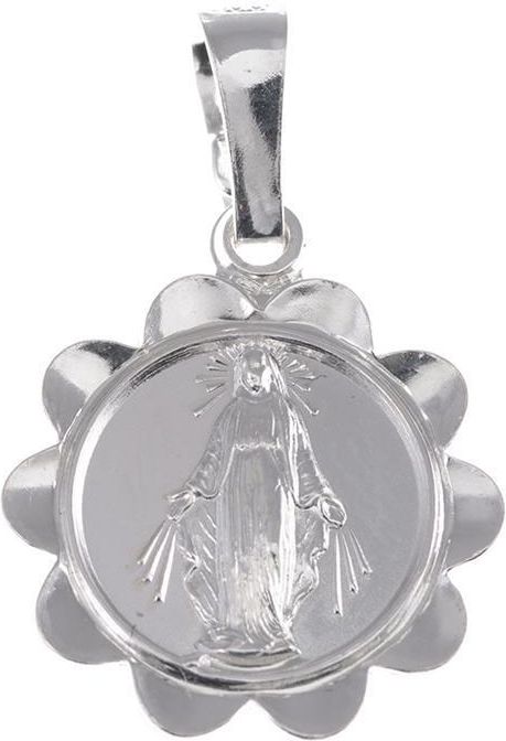 Medalik srebrny Matki Bożej Niepokalanej wykonany ze srebra próby 925. Wymiary medalika: Długość z zawieszką: ok. 2,3 cm Długość bez zawieszki: ok. 1,7 cm Szerokość: ok. 1,5 cm Waga: ok. 1,8 - 2,0 g Tył medalika gładki.