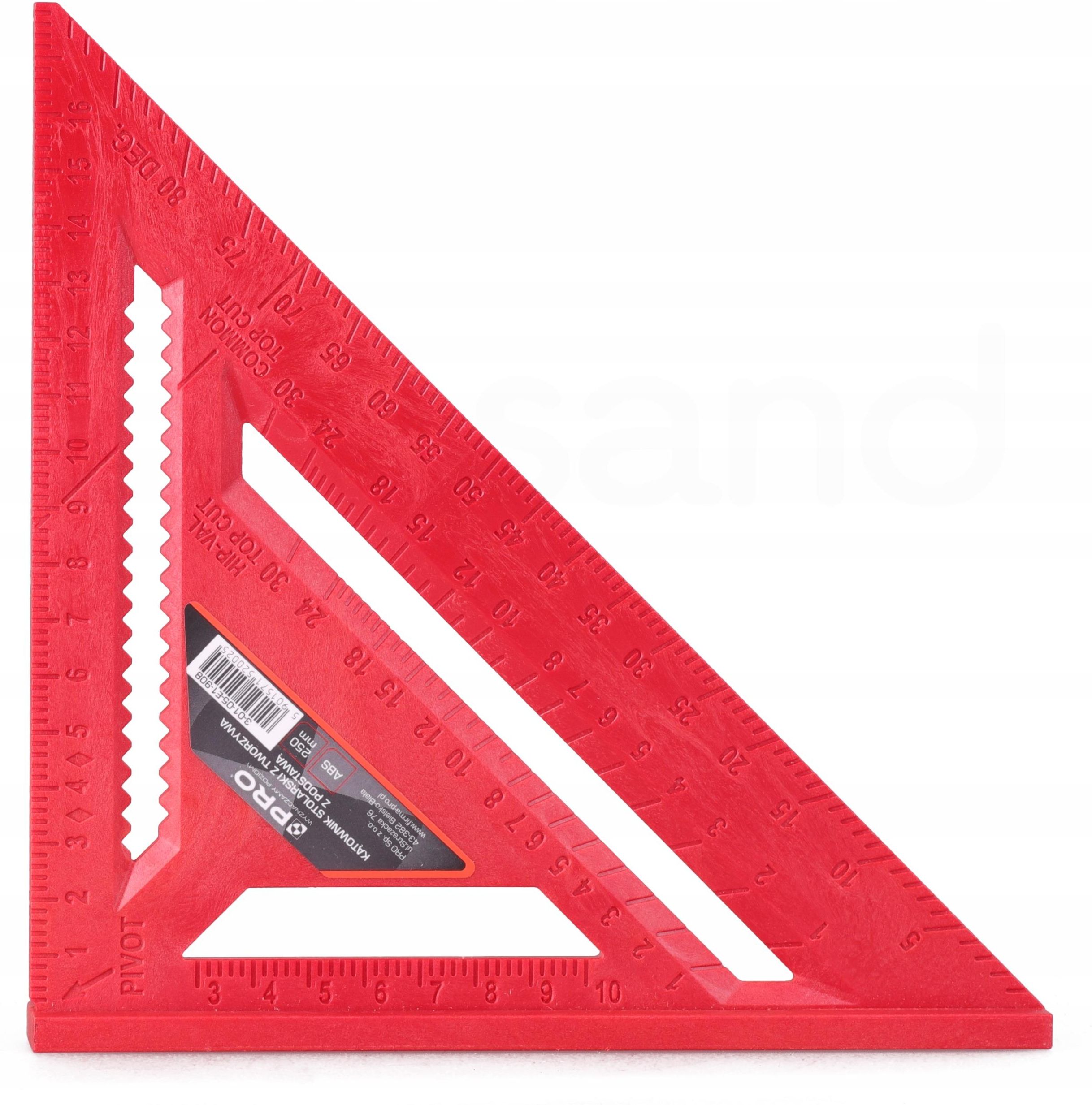 Kątownik stolarski "PRO" 185 mm: Wielofunkcyjny kątownik do krokwi, do wyznaczania linii równoległych, dowolnych kątów 0-90°. Wyposażony w stopkę umożliwiającą precyzyjne ułożenie kątownika względem mierzonego elementu. Dane techniczne: materiał wykonania: tworzywo ABS. szybkie i precyzyjne wyznaczanie linii równoległych. szybkie wyznaczanie kąta 45 i 90 st. wyznaczanie kątów w zakresie 0 - 90st. ( na najdłuższym boku znajduje się podziałka-kątomierz) docinanie krokwi w więźbach dachowych. ustawianie kątów w piłach kątowych. komfortowe prowadzenie pilarki wzdłuż ramienia. wymiary: 185 x 182 x 258 mm. Na naszych pozostałych aukcjach znajdą Państwo inne rodzaje kątowników.