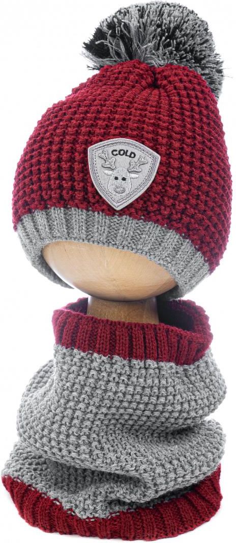 Komplet chłopięcy składający się z czapeczki i kominka. Został wykonany w całości z wysokogatunkowego akrylu. Czapka dwuwarstwowa. Kominek dwuwarstwowy w kolorze czapki. Komplet idealnie sprawdzi się u dziecka w sezonie jesienno-zimowym. Skład: 100% akryl Obwód: Czapka- 46cm-48cm, Kominek- naciąga się od 44cm do 50cm, wysokość 22 cm Sugerowany wiek: 1 – 2 lat