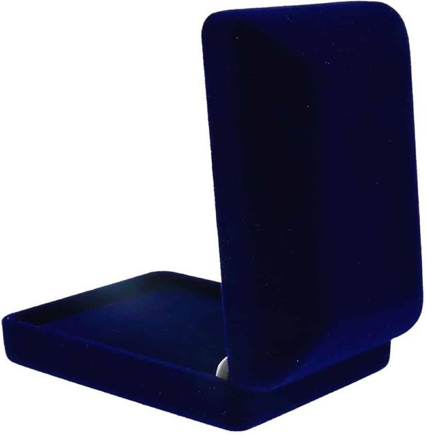 Eleganckie opakowanie jubilerskie wykończone granatową tkaniną flokową oraz białą satyną. Wymiary pudełka: 6 cm x 8 cm x 3 cm