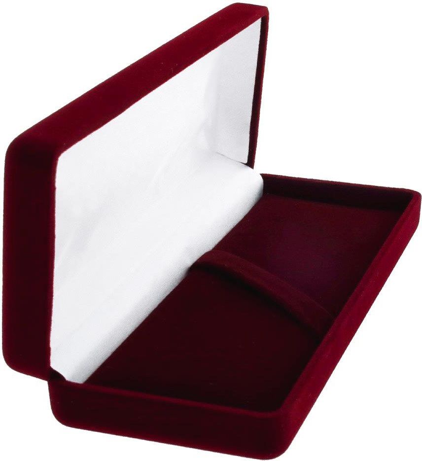 Eleganckie opakowanie jubilerskie wykończone bordową tkaniną welurową oraz białą satyną. Wkładka z ukośnym paskiem oraz podłużny kształt sprawiają, że idealnie nadaje się jako pudełko prezentowe na pióro lub łyżeczkę. Wymiary pudełka: 155x60x31 mm