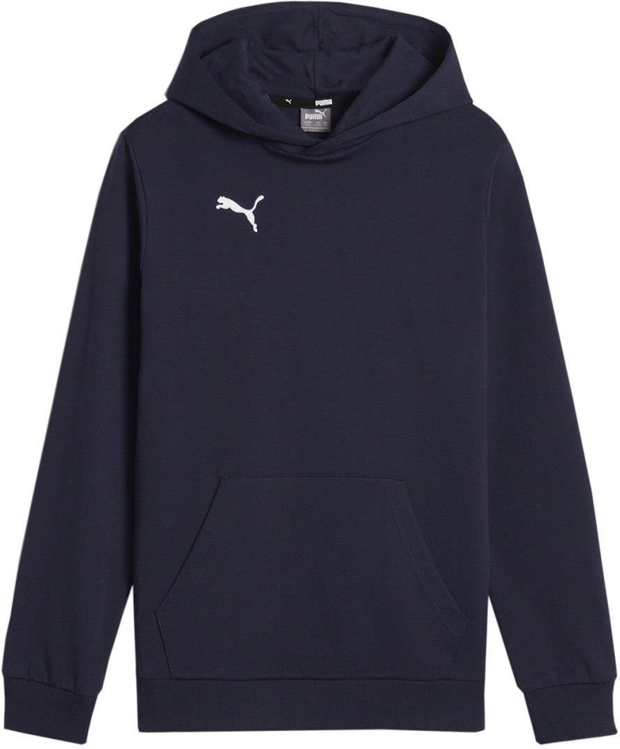 Bluza dla dzieci Puma Team Goal Casuals Hoddy granatowa 658619 06 Bluza Puma przeznaczona dla dzieci sprawdzi się na co dzień i podczas treningów. Regularny krój. Miękki materiał. Obszerny kaptur bez regulacji. Regularny krój wykończony ściągaczami. Duża kieszeń na froncie. Niewielkie logo. Linia Team Goal. Materiał główny: 100% bawełna