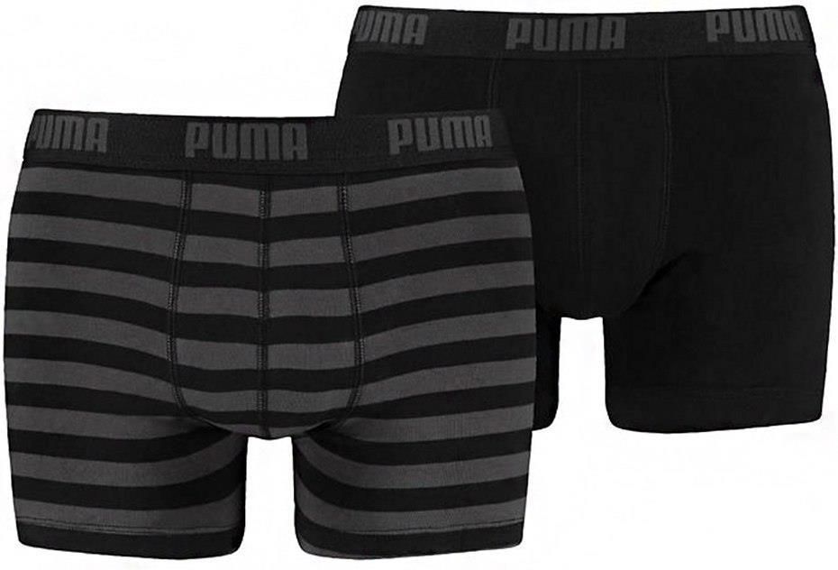 Bokserki męskie Puma Stripe 1515 Boxer 2P czarne 591015001 Bokserski dla mężczyzn Puma sprawdzą się podczas codziennego użytkowania. Pozwalają skórze oddychać. Dopasowana konstrukcja. Elastyna gumka w pasie. Cena za 2 sztuki. Materiał: 95% bawełna, 5% elastan