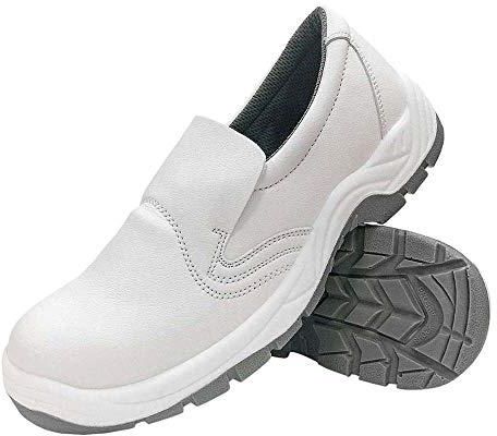 PÓŁBUTY ROBOCZE MOKASYNY FODREIS ZE STALOWYM PODNOSKIEM WYKONANE Z MIKROFIBRY BRFODREIS SB Porządny i wygodny model butów roboczych wykonano z mikrofibry w białym kolorze. Model ten to półbuty przed kostkę, typ mokasyn, wygodnie wciągany z językiem który zakrywa elastyczną gumkę w przegubie. Kategoria obuwia to SB E FO SRA, buty ochronne spełniają wymagania norm EN20345, EN20344. Podeszwa tego modelu także jest biała a wykonano ją z solidnej jakości podwójnego poliuretanu. Dodatkowym atutem jest stalowy podnosek wytrzymały na uderzenia z energią 200 J oraz zagięcia do 15 kN. Cechy charakterystyczne butów FODREIS model butów to BRFODREIS SB producent Reis zostały wykonane z mikrofibry dostępne w kolorze białym buty przed kostkę, typu mokasyn wciągane z językiem zakrywającym gumkę na przegubie mają podeszwę, która jest wykonana z podwójnego poliuretanu, w kolorze białym, posiadają stalowy podnosek wytrzymały na uderzenia z energią 200 J oraz zagięcia do 15 kN, który zwiększa ochronę i poczucie bezpieczeństwa w trakcie pracy kategoria butów SB E FO SRA, spełniają wymagania norm EN20345, EN20344 polecane pracownikom branży spożywczej Buty robocze SB - jakie ochrony posiada obuwie ochronne tej kategorii Buty robocze wyprodukowane zgodnie z normą EN ISO 20345 są oznaczone literą "S" po której występuje dodatkowe oznaczenie. W butach roboczych kategorii SB mamy zapewnioną ochronę podstawową. Buty bhp tego rodzaju posiadają podnosek ochronny który wytrzymuje uderzenie do 200J. Dodatkowo wierzch obuwia musi być wykonany ze skóry dwoinowej lub innego wytrzymałego materiału. Podeszwa obuwia ochronnego SB ma być odporna na oleje, benzynę, rozpuszczalniki organiczne. Obuwie kategorii SB występować mogą jako sandały robocze, półbuty robocze przed kostkę czy też trzewiki robocze. Często obuwie to jest stosowane na magazynach, halach produkcyjnych oraz tam gdzie nie wymaga się bardziej zaawansowanej ochrony