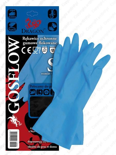Minimalna ilość zamówienia to opakowanie zawierające 12 par (sprzedaż tylko w pełnch opakowaniach).Cena podana jest za parę rękawic. GOSFLOW Rękawice ochronne gumowe flokowane. wykonane z kauczuku naturalnego. Gramatura 60 g. Wewnętrzna powierzchnia rękawic pokryta jest flokiem (pyłem bawełnianym), co ułatwia wkładanie i zdejmowanie oraz zapobiega poceniu się rąk w czasie użytkowania. Na części chwytnej chropowata struktura dzięki czemu rękawiczki zyskują lepszą przyczepność. Odporne na rozciąganie. Wysoka odporność na detergenty i środki piorące. Doskonale sprawdzą się w gospodarstwach domowych. Wykorzystywane do ogólnych prac mechanicznych oraz w przemyśle spożywczym. Każda para pakowana w osobną torebkę, dzięki czemu świetnie się prezentują i są idealne na wszelkiego rodzaju prezentacje. Mogą być stosowane w kontakcie z żywnością. Zgodne z normami EN388 (poziomy odporności: 1 1 1 0 X), EN374-5 oraz EN420. Marka: REIS Produkt polecany dla branż: Obsługa techniczna obiektów w tym hoteli, prace domowe oraz porządkowe, kwiaciarnie,Przemysł spożywczy w tym obsługa restauracji oraz służby zdrowia i lecznictwa,Rolnictwo Ogrodnictwo Leśnictwo Łowiectwo Rybactwo