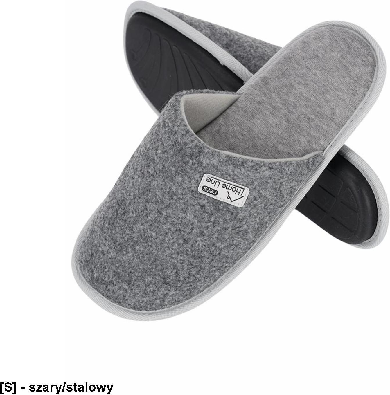 SLIPFIL Kapcie męskie. włókninowa cholewka filcowa 100% poliester. Dziana podszewka nylex 100% poliester. Dziana wkładka z weluru 100% poliester. Podeszwa wykonana z TPR. Wsuwane. Lekkie i wygodne, zapewniają wysoki komfort użytkowania. Sprawdzą się jako kapcie dla gości w domu bądź w hotelu. Marka: REIS
