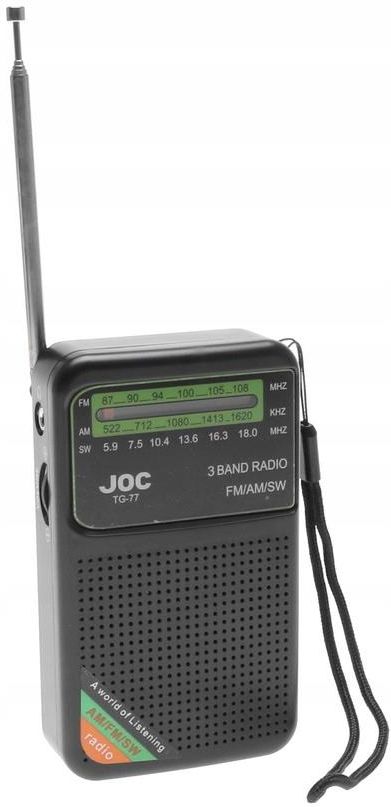 Małe radio przenośne Przydatne w każdym domu jak również w plenerze. Zasilane na wymienny akumulator Cechy produktu Włącznik z płynną regulacją głośności Obudowa z tworzywa Sznurek do przenoszenia Tuner wbudowany w urządzenie umożliwia odbiór fal z pasm FM, AM oraz SW Wejście słuchawkowe Zasilane na wymienny akumulator3,7 V (GRATIS w zestawie) Możliwość ładowania przez USB-C (kabel w zestawie) oraz bezpośrednio do gniazdka (Brak wtyczki w zestawie) Składana antena teleskopowa Wymiary: 11,5 x 7 x 3 cm Zakresy radia FM: 87 - 108 MHz AM: 522 - 1620 KHz SW: 5.9 - 18.0 MHz Kolor radia wysyłamy wyłącznie losowo