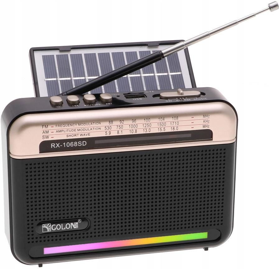 Radio przenośne z funkcją bluetooth i podświetleniem RGB Przydatne w każdym domu jak również w plenerze, może służyć również jako głośnik bluetooth. Cechy produktu: Włącznik z płynną regulacją głośności Podświetlenie RGB, kilka trybów świecenia, w tym w rytm muzyki Wbudowany panel solarny, który ładuje akumulator w słoneczne dni Tuner wbudowany w urządzenie umożliwia odbiór fal z pasm FM, AM oraz SW Regulator dostrojenia Wymienny akumulator 18650 (Gratis w zestawie) Funkcje odtwarzania: następna piosenka, poprzednia piosenka, play, pauza, przewijanie do przodu i do tyłu, TWS oraz zmiana trybu świecenia Funkcja Bluetooth - możliwość połączenia np. z telefonem Wejście na kartę TF Wejście USB 2.0, możliwość odtwarzania plików mp3 KabelUSB-C w zestawie Obrotowa antena teleskopowa Wymiary: 15 x 10,5 x 5,5 cm Zakresy radia: FM: 88 - 108 MHz AM: 530 - 1710 KHz SW: 5.9 - 18.0 MHz