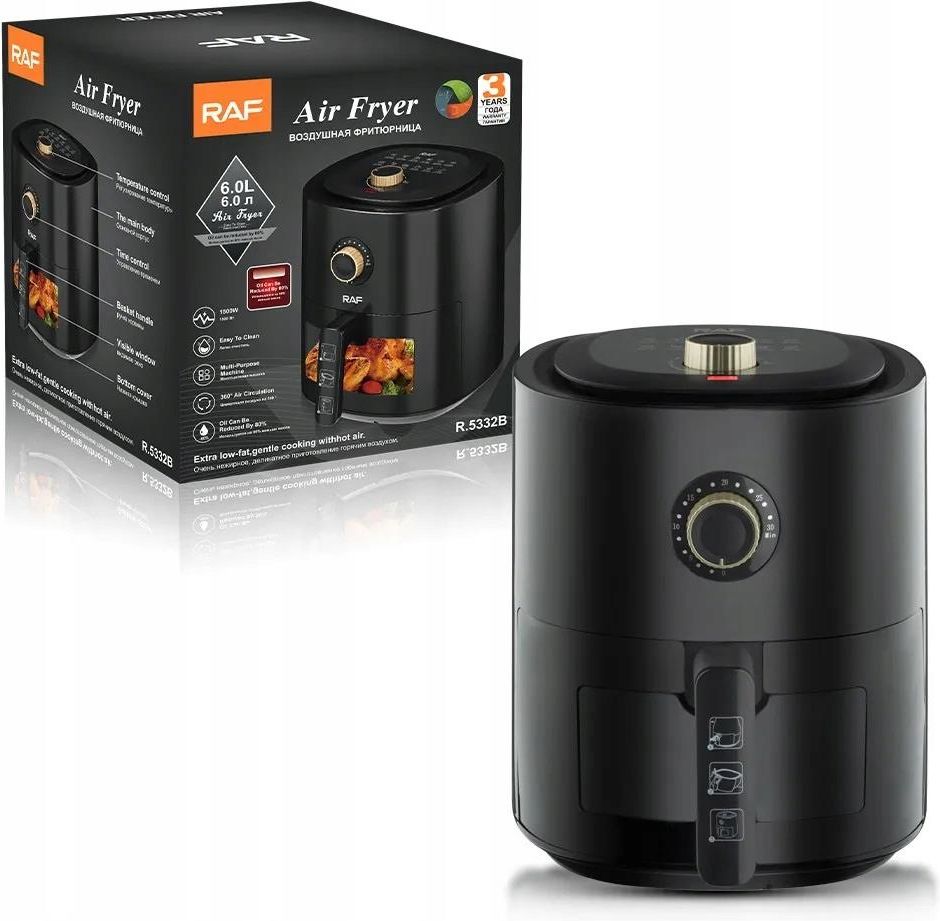 URZĄDZENIE AIRFRYER DO BEZTŁUSZCZOWEGO PRZYGOTOWANIA FRYTEK I INNYCH POTRAW WYSOKIEJ JAKOŚCI FRYTKOWNICA NA GORĄCE POWIETRZE MARKI RAF O MOCY AŻ 1500W I POJEMNOŚCI KOSZA DO 6 LITRÓW! Nowoczesne multifunkcyjne urządzenie premium do smażenia, grillowania, pieczenia, podgrzewania, rozmrażania, …