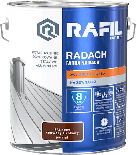 RAFIL Radach Farba Na Dach Pojemność: 10L | Kolor: RAL3009 | Efekt wykończenia: półmat ZASTOSOWANIE Metal Dach rynna parapet DOSTĘPNE KOLORY RAL3009 RAL3011 RAL3013 RAL6007 RAL7016 RAL7024 RAL7040 RAL8004 RAL8011 RAL8017 RAL9003 RAL9005 RAL9006 OPIS PRODUKTU RAFIL Radach Farba Na Dach …