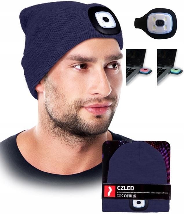 Reis Ciepła Czapka Z Latarką Led Czołówka Granat Ocieplana Polarem Ładowana Usb Kraków