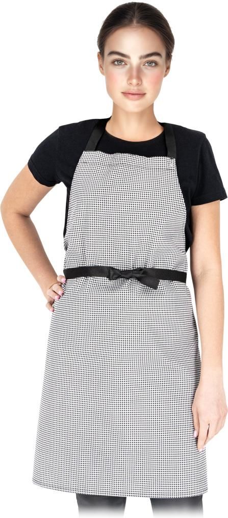 Fartuch w pepitkę, z regulacją na szyi PEPITTO materiał: 65% poliester, 35% bawełna gramatura: 190 g/m² wiązany na paski z tyłu długość paska na szyi regulowana za pomocą zapięcia na napy możliwość prania (bez nadruku) do 60°C Tabela rozmiarów Rozmiar: 70X80 wzrost: 158-192 pas: 70-142 klatka: - …