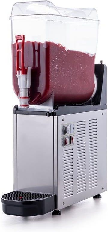 Opis Profesjonalna maszyna przeznaczona do przygotowywania sorbetów, slush shake oraz granity Idealnie sprawdzi się w małych i średnich lokalach gastronomicznych Proporcja cukru w mieszance musi wynosić od 12% do 17% Granitę należy schładzać stopniowo, zaczynając od trybu I, a następnie przełączyć do trybu II Energooszczędny tryb pracy nocnej umożliwia przechowywanie produktu w stałej niskiej temperaturze, bez konieczności codziennego zlewania mieszanki Kompaktowa i prosta w obsłudze Łatwy demontaż poszczególnych elementów urządzenia Wygodny uchwyt dozujący Pojemnik wykonany z poliwęglanu przeznaczonego do kontaktu z żywnością Standardowo tacka ociekowa wyposażona we wskaźnik poziomu wody Obudowa wykonan ze stali nierdzewenej Parametry techniczne Wymiary zewnętrzne[mm]: 195x530x770 Czynnik chłodniczy: R404A / R290 Tryb odszraniania: mechaniczny Pojemność[l]: 12 Moc chłodnicza[kW]: 0,49 Moc[kW]: 0,34 Zasilania [V]: 230 Waga[kg]: 24,7 *wymiary wraz z tacką ociekową Warunkiem udzielenia gwarancji na urządzenia siłowe (400V) i urządzenia gazowe z oferty Resto Quality jest wypełniona i podpisana przez technika z uprawnieniami (E1,E3) lista kontrolna pierwszego uruchomienia urządzenia
