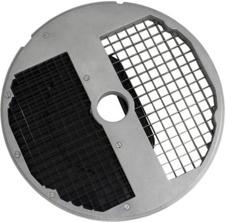 Promocja do wyczerpania zapasów Tarcza do kostek zawiera oczka dwóch grubości. Aby użyć wybranej części tarczy należy jedną z nich zakryć specjalną przykrywką. Aby tarcza działała poprawnie należy umieścić w urządzeniu jednocześnie tarczę nożową tnącą oraz wybraną tarczę do kostek. Tarcza dedykowana szatkownicy RQ780 Średnica tarczy: 210mm Dwie grubości kostki: 8x8mm i 10x10mm Do stosowania tylko z tarczami odcinającymi W zestawie przykrywka do nieużywanej części tarczy i wypychacz do kostek Nierdzewna Można myć w zmywarce