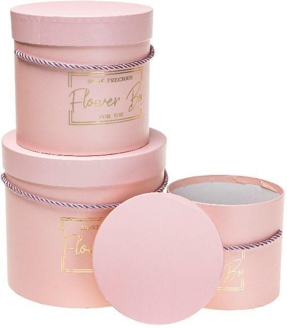 Pudełko Flower Box 3szt jasnoróżowy ROZETTE Rozmiar: 18x18x17 cm 15x15x14.5 cm 13x13x12 cm