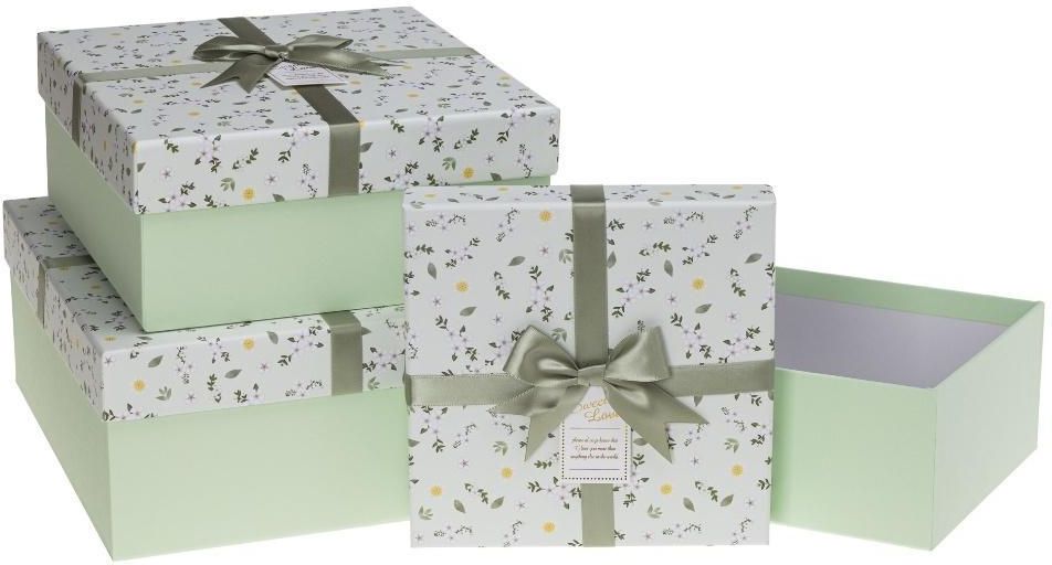 Pudełko prezentowe z kokardą 3szt zielony ROZETTE Wymiary pudelek: S: 18x18x9cm M: 22x22x10cm L: 26.5x26.5x11.5cm