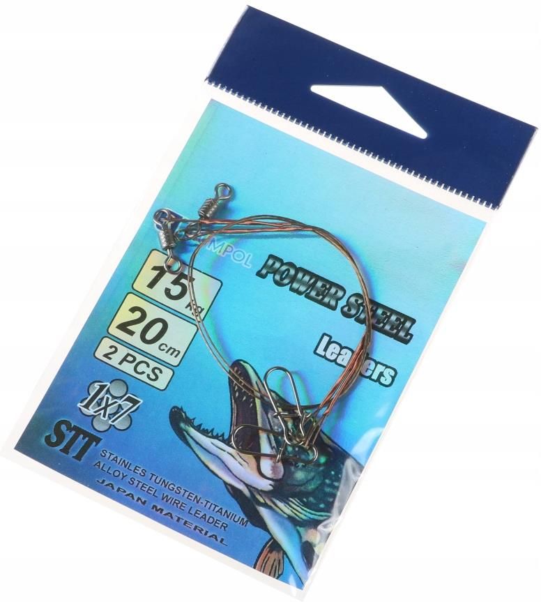 Przypony wolframowe 2 sztuki Sprzęty niezbędna każdemu wędkarzowi Cechy produktu Przypony wolframowe z mocnym krętlikiem i agrafką Splot z 7 ultracienkich linek Długość: 20 cm Wytrzymałość: 15 kg Zestaw zawiera 2 sztuki