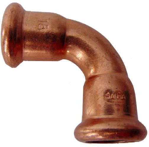Łuk nyplowy CU fi 28 Sanha 2 kielichowy miedź zaciskana seria SA 6000 - kąt 90 stopni Średnica: 28 mm Maks. ciśnienie robocze: 16 bar rozmiaru Temperatura robocza: -30 °C - +120 °C Gwint zgodny z PN-EN 10226 i / lub PN -ISO 7 / 1 typ R oraz Rp Do zaciskania szczękami lub pętlami zaciskowymi o …