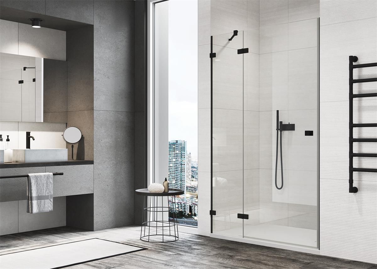 ANNEA DRZWI BEZPROFILOWE DO WNĘKI 80 CM W KOLORZE CZARNYM MATOWYM ORYGINALNY PRODUKT SZWAJCARSKIEJ FIRMY SANSWISS - DRZWI UCHYLNE Z SERII ANNEA - MODEL AN13W LEWE BEZPROFILOWE - SZEROKOŚĆ 800 MM - WYSOKOŚĆ 2000 MM - NR KAT. AN13WG08000607+V.ANE.06 - SZKŁO HARTOWANE PRZEZROCZYSTE O GRUBOŚCI 6 MM - …