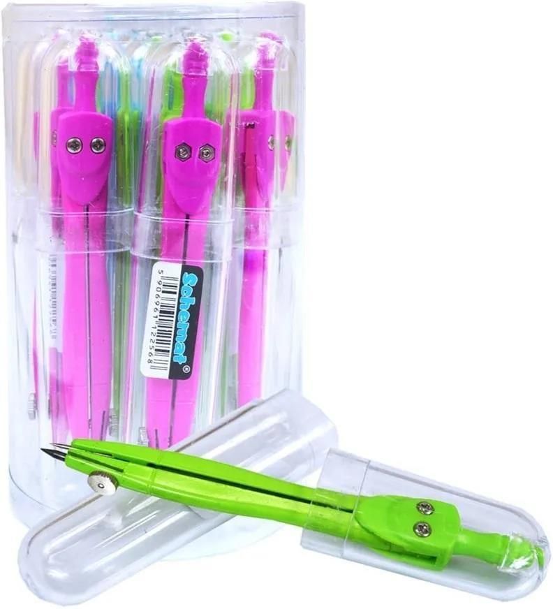 - szkolny cyrkiel metalowy- w elastycznym, plastikowym etui- płynnie regulowany rozstaw ramion